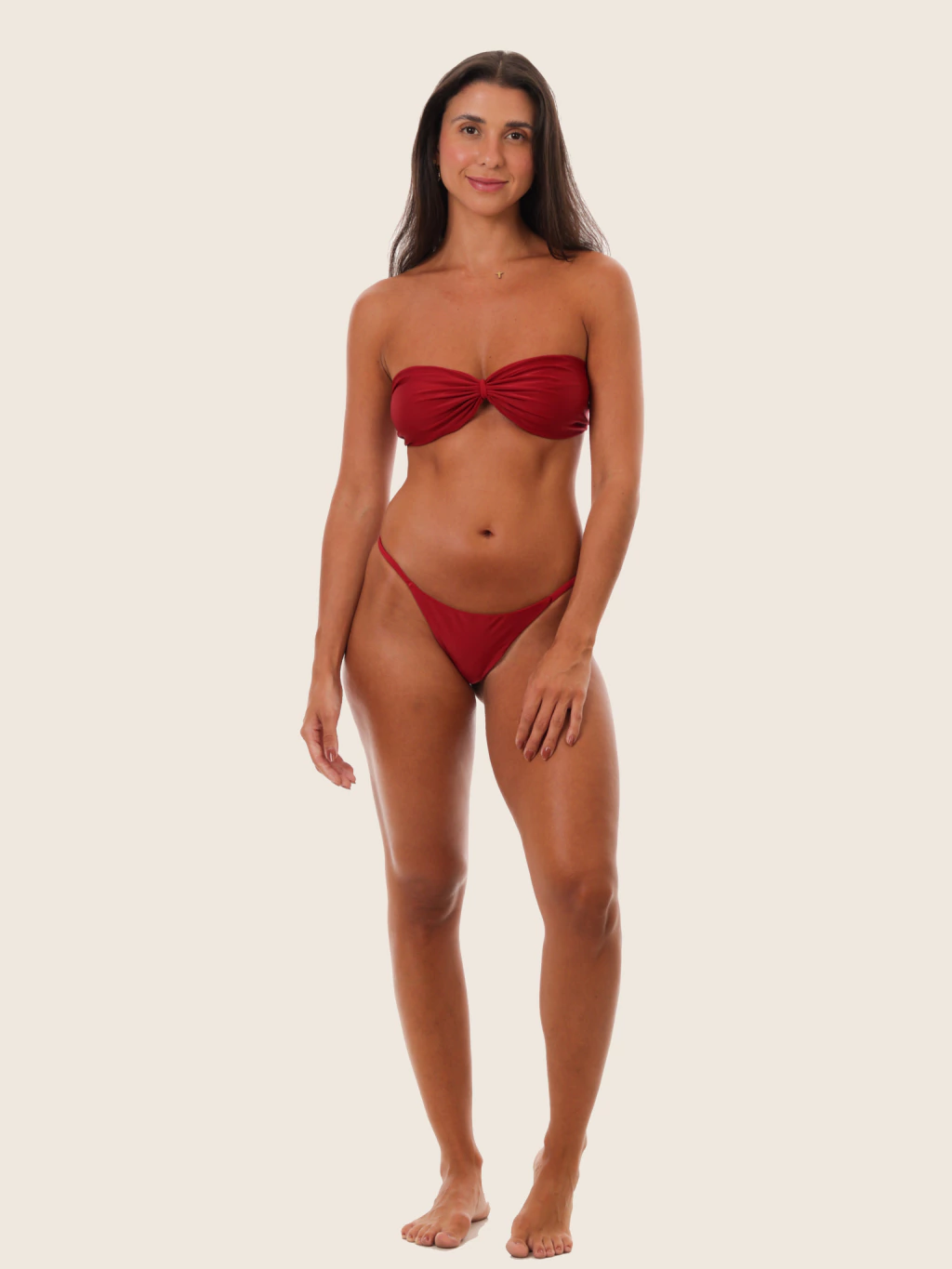 A calcinha é fininha, mas não é de amarrar! É aquele modelo fixo, super fácil de vestir e muito confortável! Utilizamos a mesma modelagem do cortininha. Possui uma costura central atrás pra ajudar a encaixar melhor no bumbum, valorizando e te deixando muito mais confortável e segura.